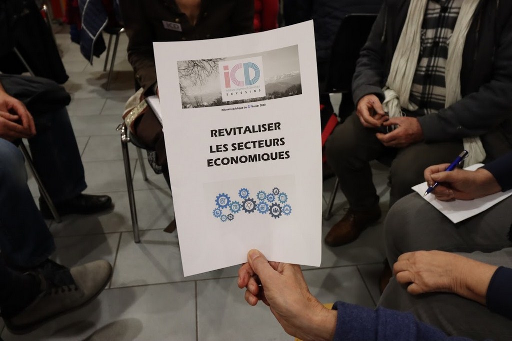 Avec les Seyssinois présents, l’équipe ICD a aussi débattu des leviers permettant d'aider des entreprises, des artisans, des commerçants, à s’installer à Seyssins ; avant d'analyser les forces de l’économie sociale et solidaire qui - bien que déjà à l’œuvre dans notre ville - restent méconnues.